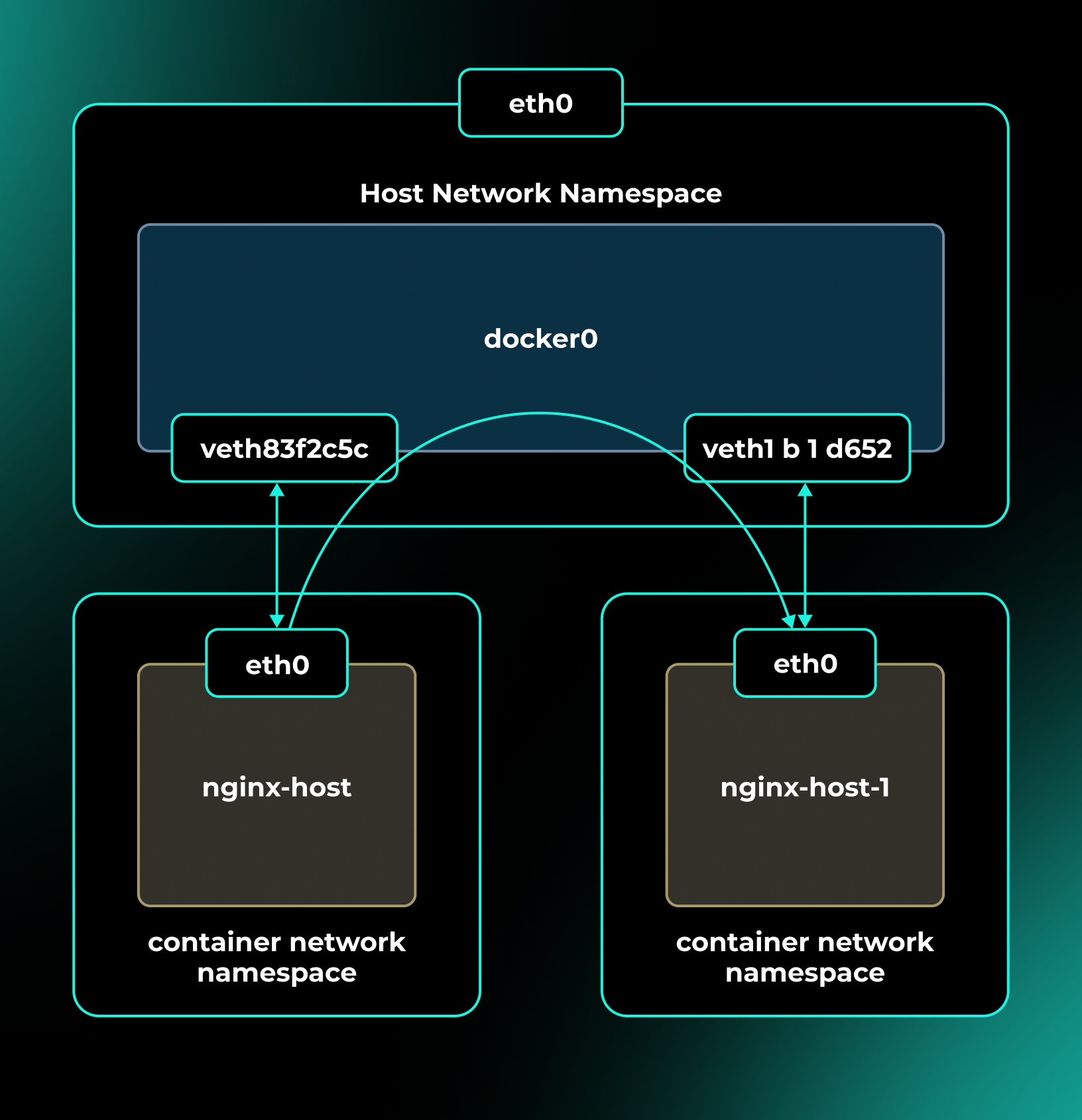 Основной способ общения контейнеров друг с другом — сетевой мост, также управляемый движком. Для обмена файлами доступно подключение одного тома сразу к нескольким контейнерам.